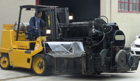 As a commercial machinery moving company we specialize in hauling small to mid-sized machinery for local Southern California businesses at great rates. We are a small company with three rigs that are manned by five skilled riggers, and backed by a courteous and experienced staff that are dedicated to answering your questions and providing quotes in writing. Our company strives to deliver more than just single truck machinery movers, while providing better rates than most other large machinery moving companies in the state.